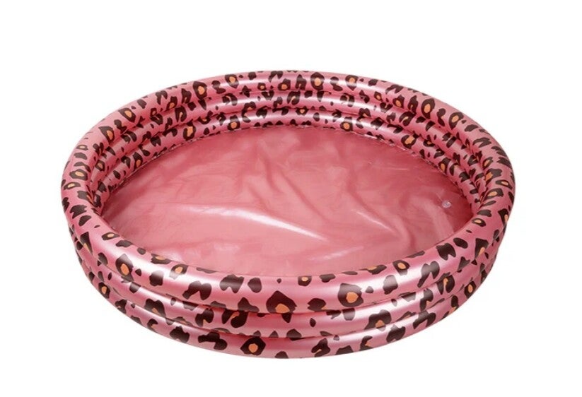 Dit rosé gouden panterprint opblaas zwembad is geschikt vanaf 3 jaar oud en heeft een diameter van 150 cm.