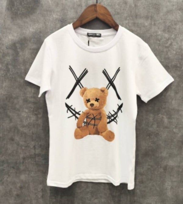 Stoer shirt met een beer en met kruizen in maat 98-104 t/m 158-164.
