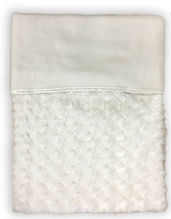 Heerlijk zachte babydeken met rozenmotief. Dit dekentje is fijn voor de kinderwagen, wieg of maxi-cosi. De grote is ongeveer 75x100cm en is van de binnenkant met fleece gevoerd